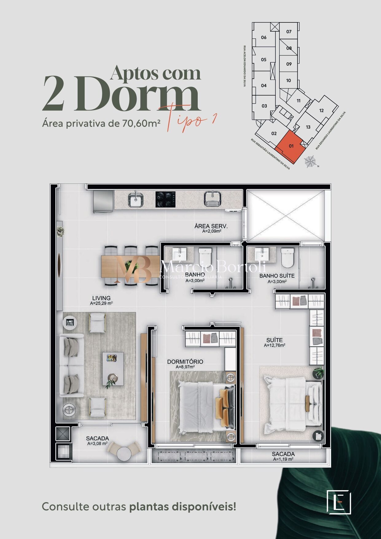 - Apartamentos de 1 dormitório - ideal para solteiros ou investimento;